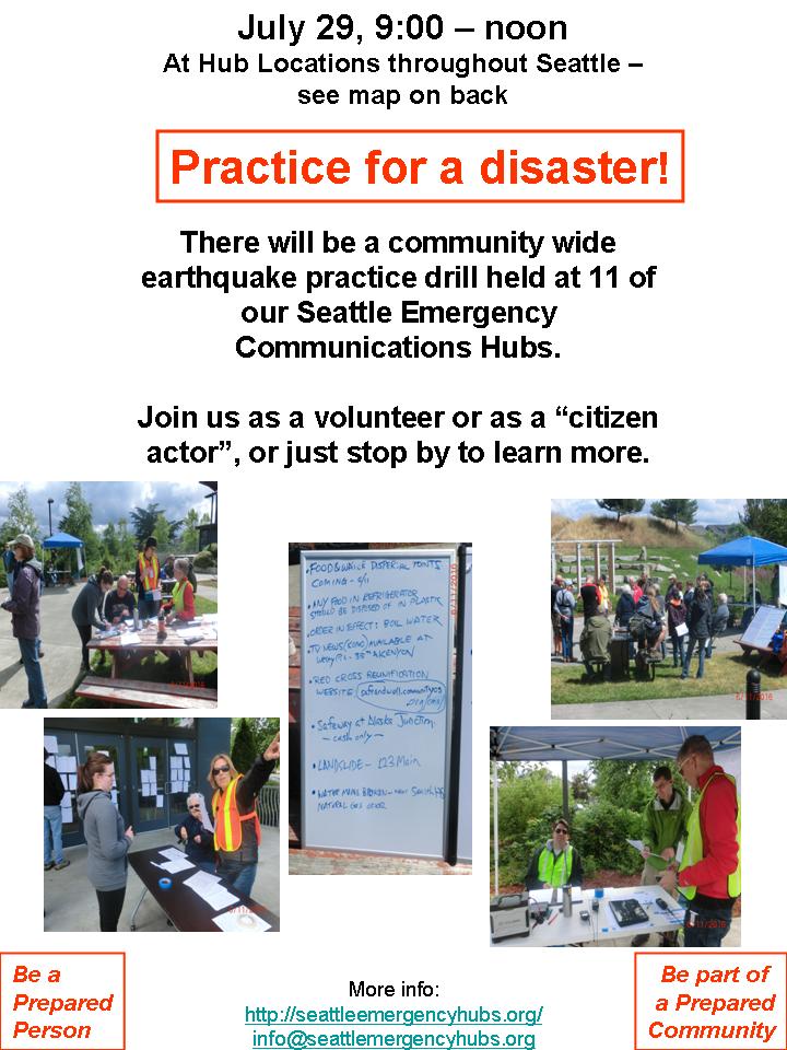 Mark your calendars! Sharpen your pencils! Spiff up your acting skills! We are taking to the field again in July to practice our response skills – this time it will be a continuation of the Cascadia Rising Subduction Zone earthquake, on day six after “the big one”.